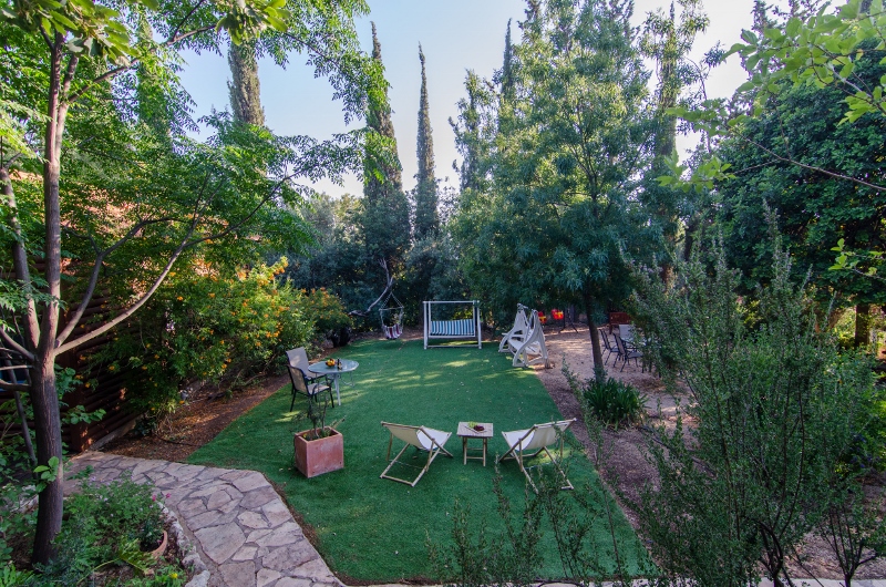 לרשותכם פינות ישבה עם ריהוט גן יוקרתי, נדנדות גן, ערסלים, מדשאה ירוקה,
